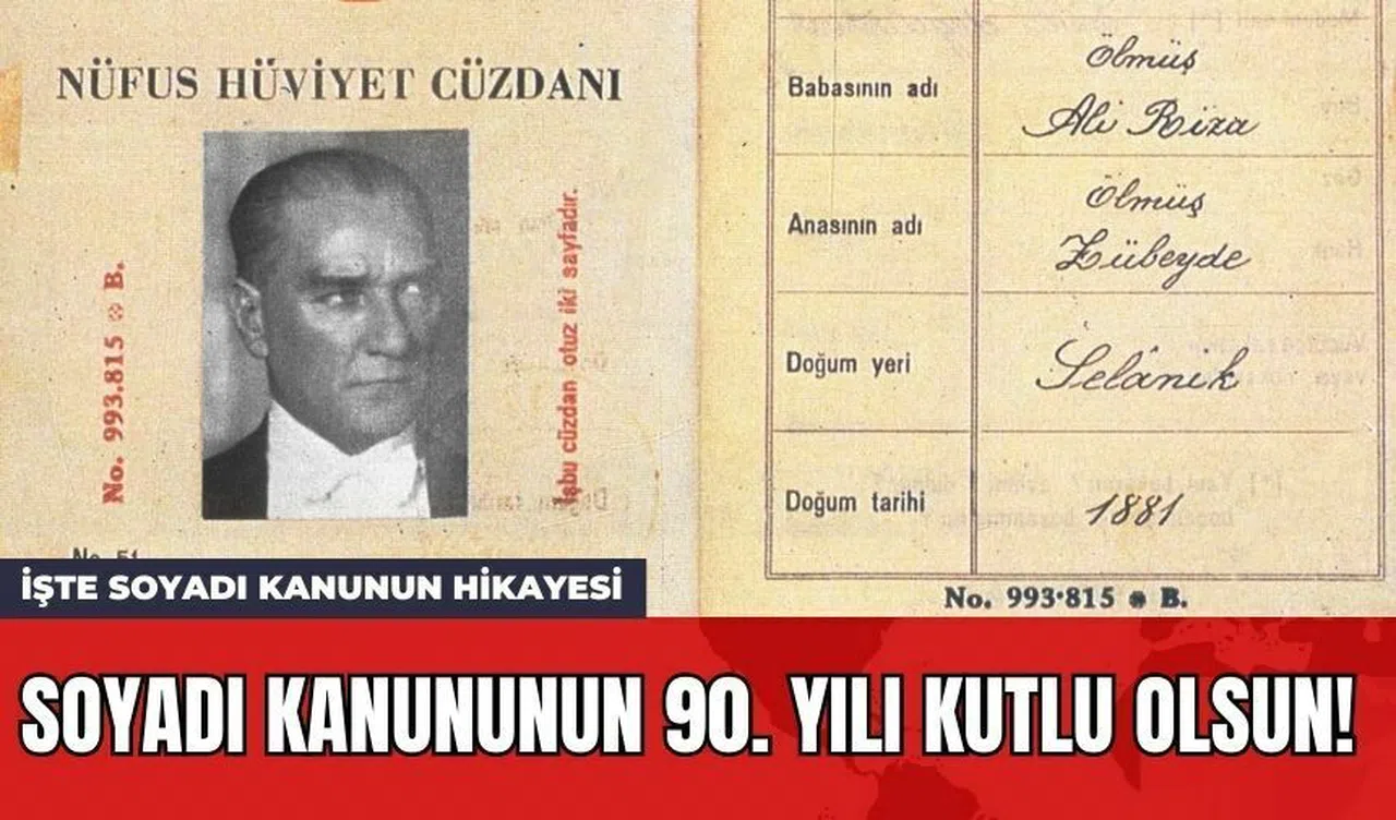 1934 yılının 21 Haziran günü 90 yıl önce bugün, Türkiye Cumhuriyeti tarihinde önemli bir dönüm noktası olarak kaydedilmiştir. Bu tarihte, Türkiye Cumhuriyeti'nin devrimci yasalarından biri olan Soyadı Kanunu kabul edildi. Kanun, Resmî Gazete'de 2 Temmuz 1934 tarihinde yayımlandı ve 2 Ocak 1935 tarihinde yürürlüğe girdi.