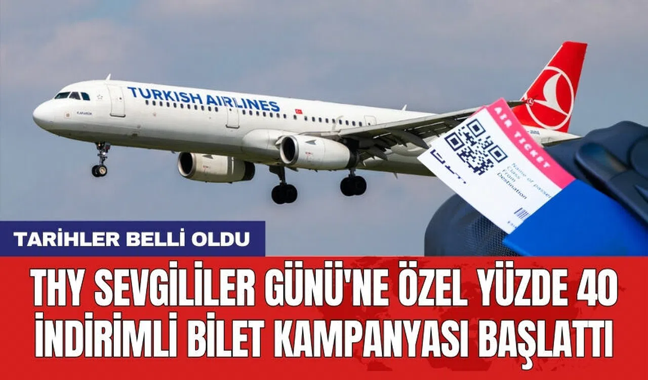 THY, Sevgililer Günü'ne özel olarak yüzde 40 indirimle bilet satışına başladı. 12 Şubat ile 16 Şubat tarihleri arasında yapılan bilet alımlarında, uçuş tarih aralığı 12 Şubat ile 31 Mart 2024 olarak belirlendi.