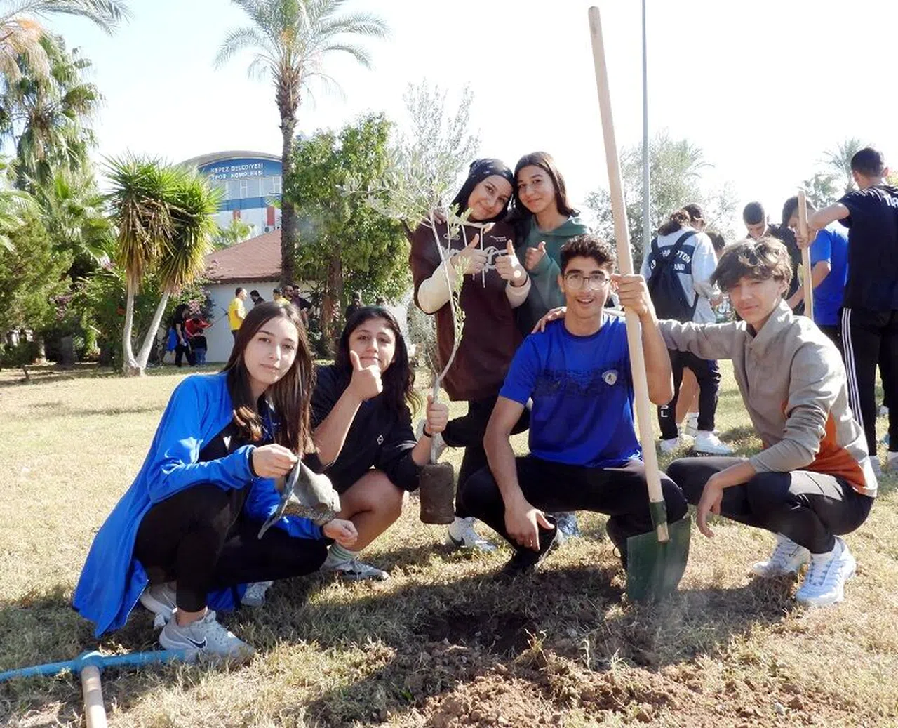 Kepez Belediyesi Spor Kulübü antrenörleri, “Milli Ağaçlandırma Günü” nedeniyle davet ettikleri Antalya Spor Lisesi öğrencileri ile birlikte zeytin fidanları dikti. Birçok ağaç ve bitki türüyle süslü kulüp bahçesinde buluşan sporcular ile öğrenciler, 20 tane fidanı toprakla buluşturdu. Kalan 30 fidanı da istedikleri yere dikmeleri için hediye edilen liseliler, keyifli dakikalar yaşadı. Bahçeye ilk kazmayı vuran kulüp başkanı Hakan Çatal, antrenör ve öğrencilerle beraber fidan dikti.