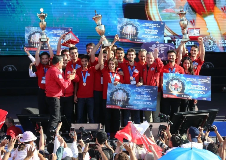 TEKNOFEST’te büyük rekabetin yaşandığı Şampiyonlar Ligi yarışmalarında kazanan takımlar ödüllerini Selçuk Bayraktar ve Bakan Kacır’dan aldı. MCT Sensor Merkutech 21 takımı birincilik ödülünü kazandı.