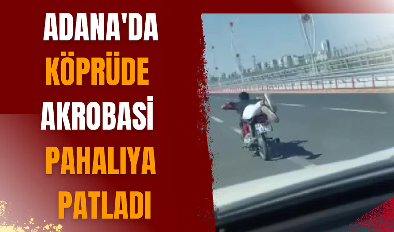 Adana’da bir sürücünün motosikleti ile köprüde yaptığı akrobatik hareketler pahalıya patladı. Motosikleti trafikten men edildi.