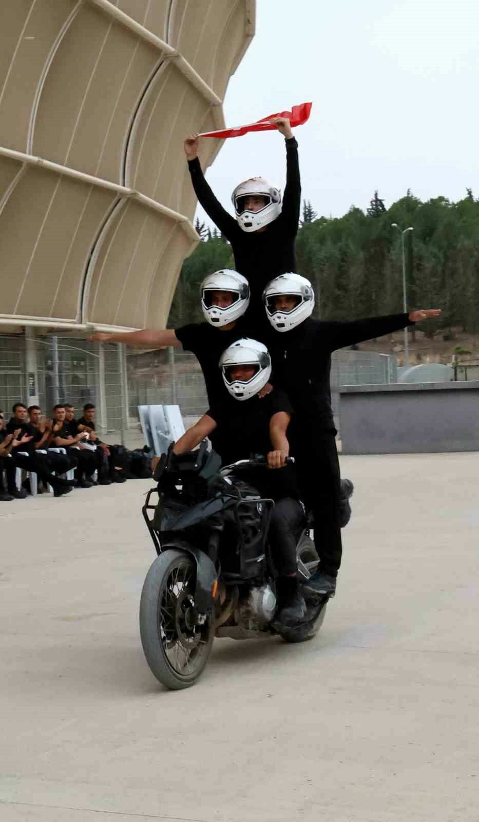 Yeni Adana Stadyumu’nda yaptıkları gösteriyle izleyenlere heyecanlı anlar yaşattı. Adana Emniyet Müdürü Doğan İnci de gösteriyi takip etti ve yunus polislerine destek verdi.