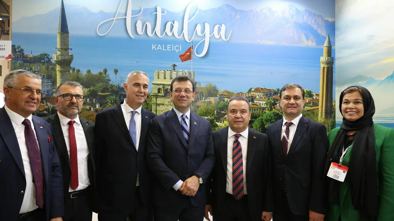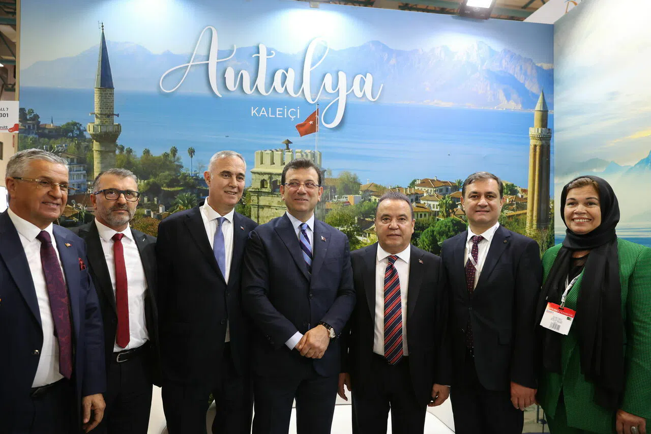 Başkan Muhittin Böcek, EMITT Fuarı’nda Kemer Belediye Başkanı Necati Topaloğlu, Elmalı Belediye Başkanı Halil Öztürk, , Demre Belediye Başkanı Gülsüm Cengiz, Gazipaşa Belediye Başkanı Mehmet Ali Yılmaz, Finike Belediye Başkanı Mustafa Geyikçi, Alanya Belediye Başkanı Adem Murat Yücel Antalya Ticaret Borsası Başkanı Ali Çandır, Antalya Esnaf ve Sanatkarlar Odaları Birliği Başkanı Adlıhan Dere ve sektör temsilcileriyle bir araya geldi. Başkan Muhittin Böcek’e TÜROFED Başkanı ve CHP Antalya Milletvekili Adayı Sururi Çorabatır da eşlik etti. Başkan Böcek, Antalya standında misafirlerini ağırladı. İstanbul Büyükşehir Belediye Başkanı Ekrem İmamoğlu da Antalya Büyükşehir Belediyesi standını ziyaret ederek, Başkan Muhittin Böcek ve turizmcilerle sohbet etti.