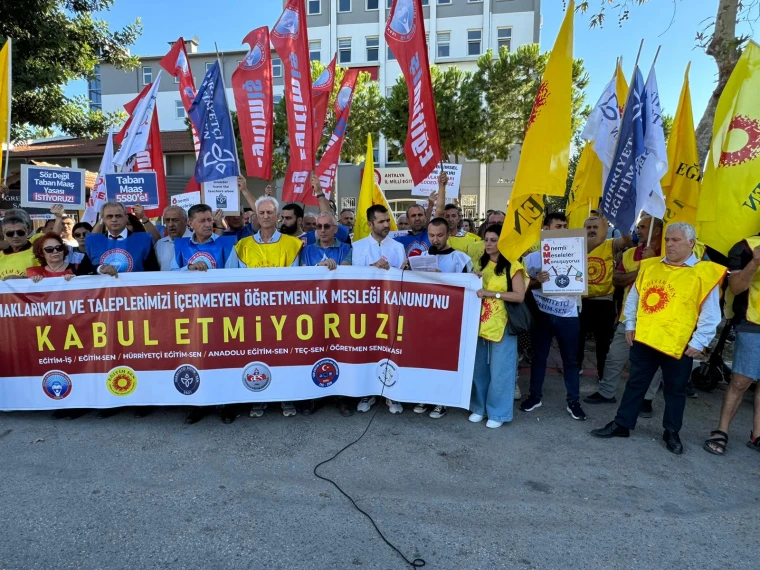 Eğitim-Sen Antalya Şube Başkanı Kadir Öztürk, “Daha önce Anayasa Mahkemesi tarafından iptal edilen hükümler yeniden düzenlenmeden teklifte yer alıyor. Özellikle aday öğretmenlik süreci, bu sefer hazırlık eğitimi adı altında güvencesiz bir hale getirilmiştir. Uzman öğretmen ve başöğretmen unvanları, görevde herhangi bir yetki farklılaştırması olmadan korunmuştur. Meslek kıdemi esas alınarak yapılan ücret düzenlemesi, tüm öğretmenlere unvan şartı aranmaksızın verilmelidir. Kanun teklifine göre Millî Eğitim Bakanlığı başarılı, eğitim fakülteleri ise başarısız olarak gösterilmektedir. Bu gerçek dışı bir iddiadır ve öğretmen yetiştiren kurumların itibarını zedelemektedir” dedi.
