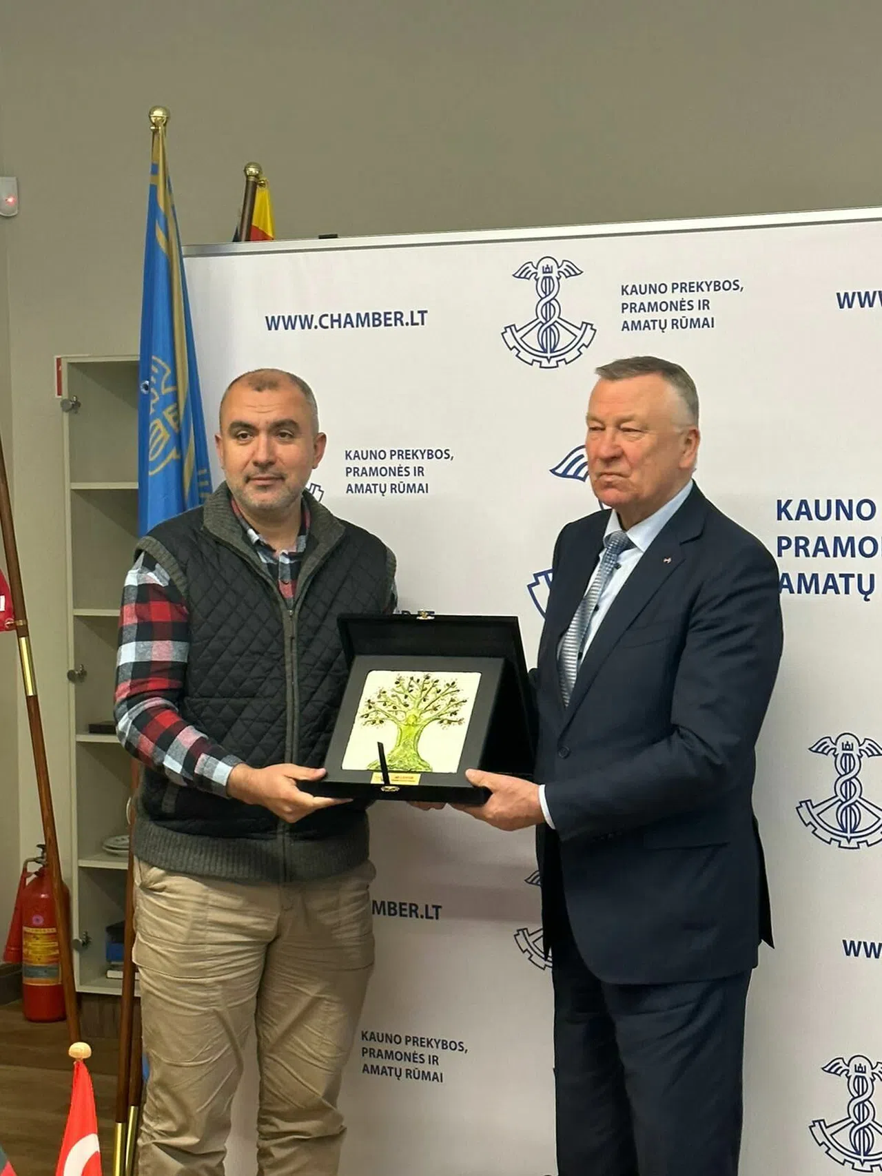 Türkiye’nin Litvanya Büyükelçisi Görkem Barış Tantekin'i ziyaret eden ATB üyeleri, Ticaret Müşaviri Ümit Ateşağaoğlu’ndan Litvanya'daki iş imkanları hakkında bilgi aldı. Türkiye ile Litvanya arasındaki ekonomik ilişkiler ve tarım sektörüne ilişkin bilgi alışverişinin yapıldığı ziyarette, karşılıklı ticareti yapılabilecek tarım ürünleri hakkında görüşler paylaşıldı. ATB Yönetim Kurulu Üyesi Cüneyt Doğan, Litvanya Büyükelçisi Görkem Barış Tantekin ve Ticaret Müşaviri Ümit Ateşağaoğlu’na Borsa adına plaket takdim etti.
