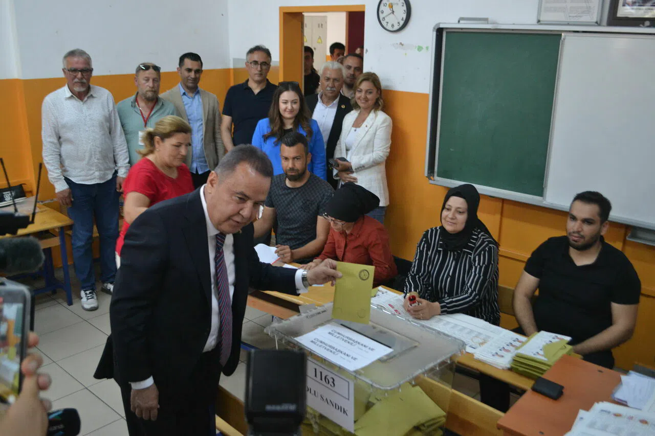 Antalya Büyükşehir Belediye Başkanı Muhittin Böcek, Cumhurbaşkanı ve 28. Dönem Milletvekili Genel Seçimleri’nde oy kullanmak için saat 11.15’de Konyaaltı ilçesi Liman Mahallesi’ndeki Bedriye Bileydi İlkokuluna geldi. 1163 numaralı sandıkta sıraya giren Başkan Böcek, zaman zaman sırasını yaşlı ve kadın vatandaşlara verdi. Başkan Böcek, “Hepimiz, bütün gençlerimiz dahil sağduyulu davranarak oylarımızı kullanıp sonucuna hepimiz katlanacağız. İnşallah ülkemiz için hayırlı olur. Bütün vatandaşlarımız özgürce, demokrasi inancıyla bugün burada oylarını kullanacaklar. Vatana millete hayırlı olmasını, seçimin sağlıklı ve huzurlu geçmesini diliyorum" dedi.