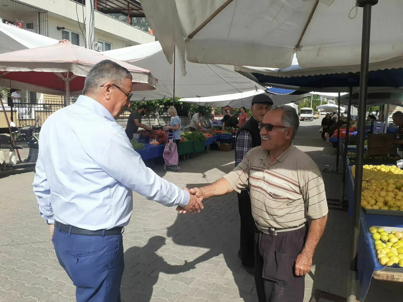 Esnafa hayırlı ve bol kazançlar dileyen Başkan Topaloğlu, “Her mahalleye bir pazar yeri” projesi kapsamında Kuzdere, Arslanbucak ve Çamyuva mahallelerinin ardından Göynük, Tekirova ve Beldibi mahallelerine de kapalı pazar yeri kazandıracaklarını söyledi.