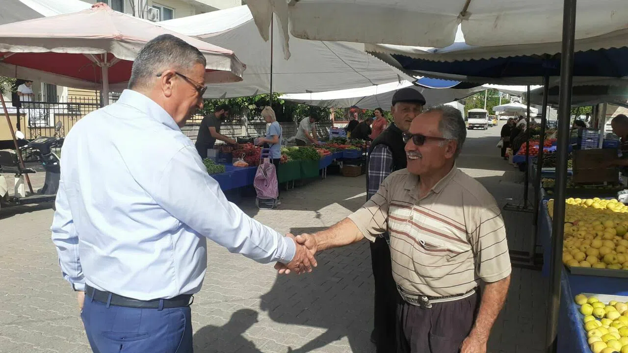 Pazar yerinde tezgah açan esnafı ziyaret eden Belediye Başkanı Topaloğlu, hem esnafla hem de alışveriş yapan vatandaşlarla sohbet etti.