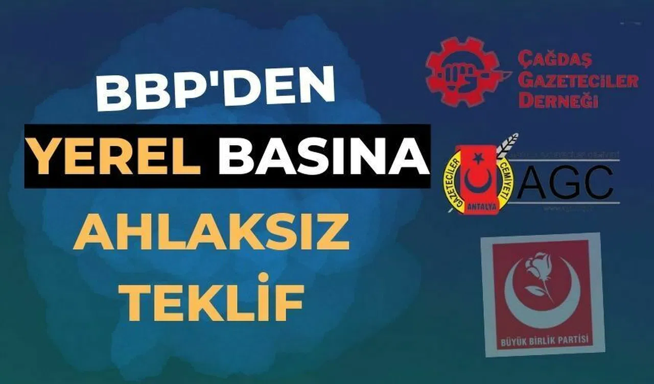 “Büyük Birlik Partisi (BBP) Antalya Kepez İlçe Teşkilatı imzasıyla 10 Nisan 2023 günü medya kuruluşlarına gönderilen basın toplantısı daveti; son yıllarda karşılaştığımız en pervasız, en terbiyesiz saldırıdır. BBP Kepez Teşkilatı, bazı partililerin partilerinden istifa edeceklerini bildirmek üzere düzenleyeceği basın toplantısına davet ettiği gazetecileri, toplantıya katılmaları halinde ve çalıştıkları yayıncı kuruluşa göre tasnif ederek, bir “nakit ödeme tarifesi” ile ödüllendireceğini bildirmiştir. Sağduyunun, ahlakın ayaklar altına alındığı bu davet gazeteciliğe yönelik en aşağılık saldırılar arasında yerini almıştır. Biz Çağdaş Gazeteciler Derneği Akdeniz Şubesi üyeleri; bu ahlaksızlığın “münferit bir cehaletten kaynaklanmadığını” biliyoruz. Bu ahlaksızlık; gazetecilere, gazetecilik mesleğine yönelik sistematik bir yaklaşımın eseridir. Gerçeklerin üzerini örtmeye odaklanan, gazetecileri satın alabileceğini zanneden yaklaşım; toplumsal hayatın her kademesinde benzer erozyonlar yarattı. Ama buna her zaman karşı çıkacağız! Sergilenen ahlaksızlığı tiksintiyle kınıyoruz. Bu pervasız daveti asla unutmayacağımızı, onurlu gazeteciler olarak her zaman karşı durduğumuz karanlıkla mücadeleye devam edeceğimizi, Türkiye kamuoyuna duyururuz.”