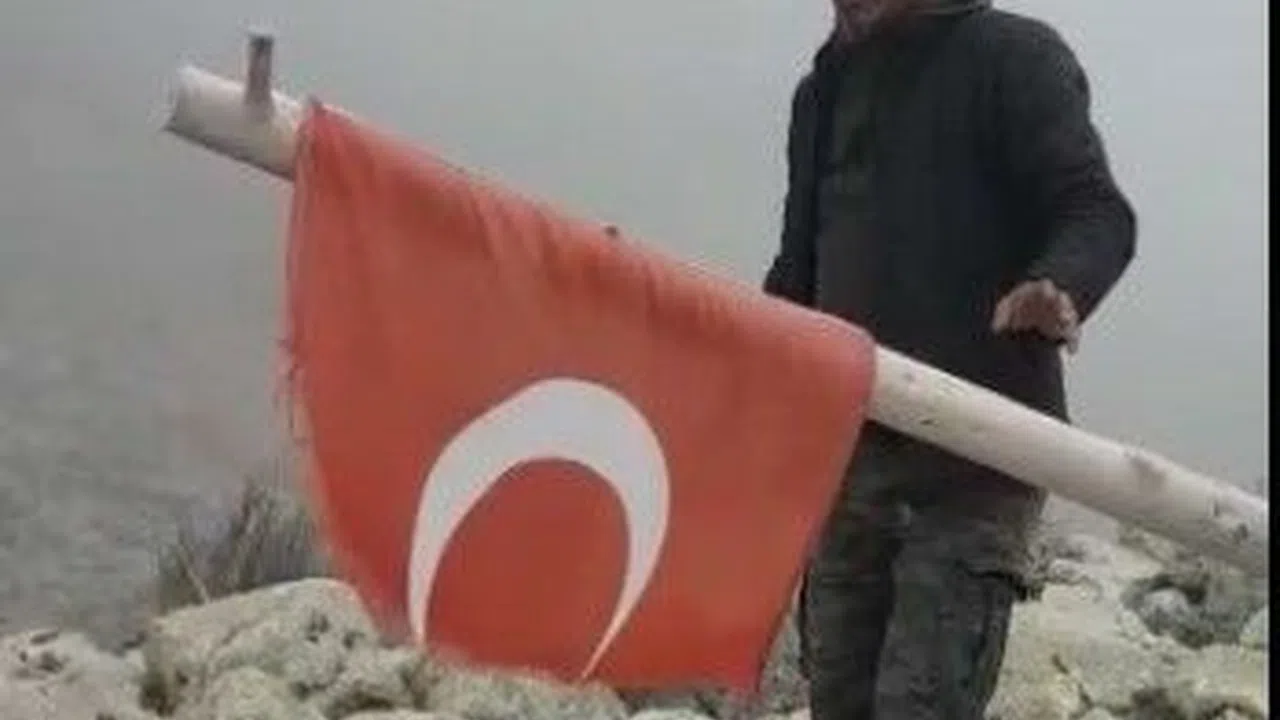 O anları cep telefonu kamerasıyla görüntüleyen ekip, “Cumhuriyetimizin 100. yılında bayrağımızı değiştirdik. Bunun için mutlu ve gururluyuz” dedi.