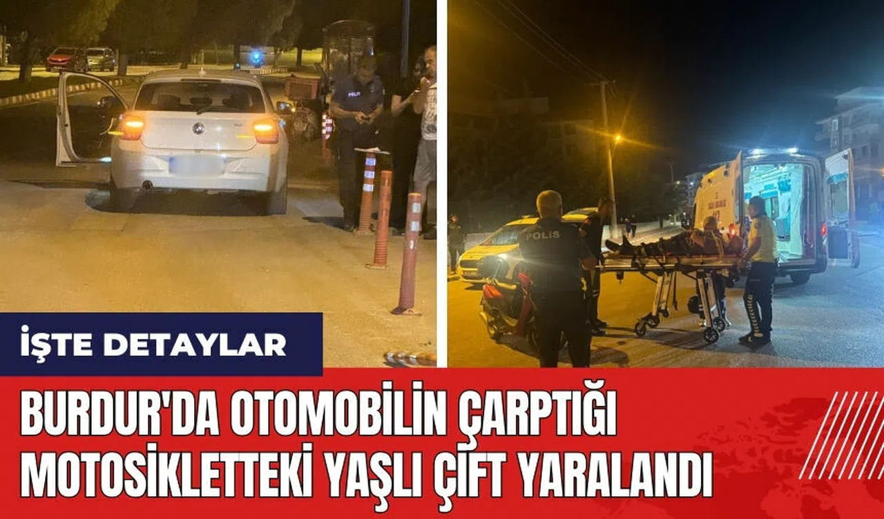 Burdur'da Merkez Bağlar Mahallesi İbrahim Zeki Burdurlu Caddesi Uçaklı Kavşak'ta saat 23.53 sıralarında kaza meydana geldi. Abdurrahman K. (59) yönetimindeki 15 AAV 528 plakalı motosiklet, kavşakta Selen H. (22) idaresindeki 15 NT 981 plakalı BMW marka otomobille çarpıştı. Çarpışmanın etkisiyle motosiklet sürücüsü Abdurrahman K. ve eşi Nazmiye K. (57) yere düşerek yaralandı.