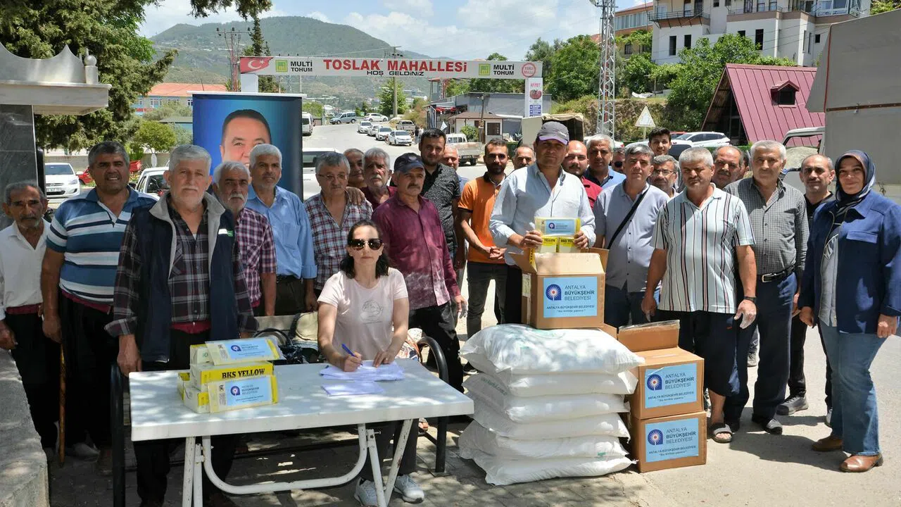 Antalya Büyükşehir Belediyesi Tarımsal Hizmetler Dairesi Başkanlığı Bitkisel Üretim ve Eğitim Şube Müdürlüğü Ziraat Mühendisleri Hatice Parlak ve Gülnihal Temur, ürünleri teslim ederken, ürünlerin kullanımı konusunda üreticilere ayrıntılı bilgiler verdi ve sorularını yanıtladı. Ürünlerini teslim alan çiftçiler ise “Üretim maliyetinin arttığı bu süreçte bize destek olan ve yanımızda olduğunu gösteren Antalya Büyükşehir Belediye Başkanımız Muhittin Böcek’e teşekkür ediyoruz “ dedi.