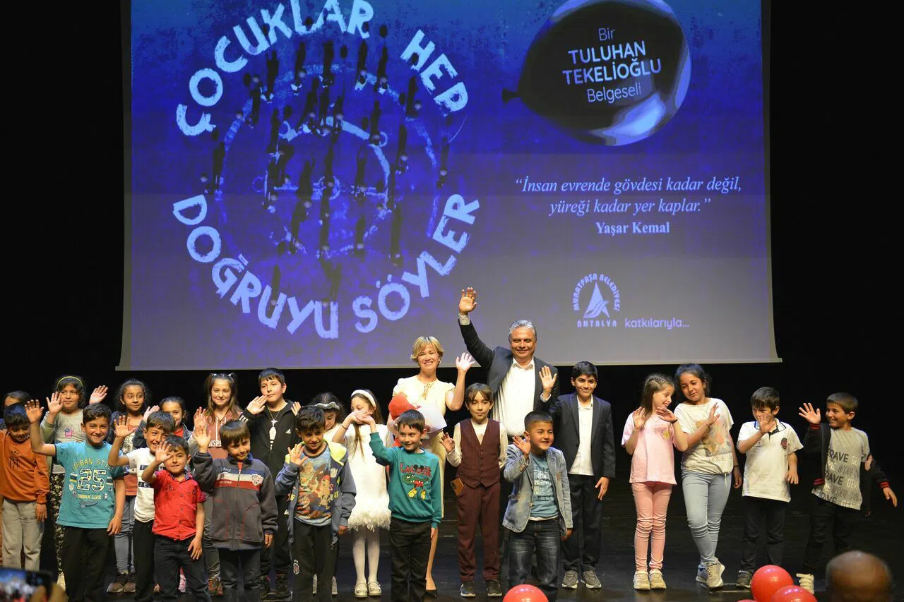 Ödüllü belgeselci Tuluhan Tekelioğlu tarafından AXA Sigorta’nın katkılarıyla çekilen Çocuklar Hep Doğruyu Söyler belgeseli, Antalya galasını yaptı. Muratpaşa Belediyesi Türkan Şoray Kültür Merkezi’nde düzenlenen galaya, Muratpaşa Belediye Başkanı Ümit Uysal ve eşi Ümran Uysal da katıldı. Galada, belgeselde Tuluhan Tekelioğlu’nun eğitim, hayaller, gelecek, sosyal medya gibi çeşitli konulara dair sorularını yanıtlayan çocuklar da yer aldı.