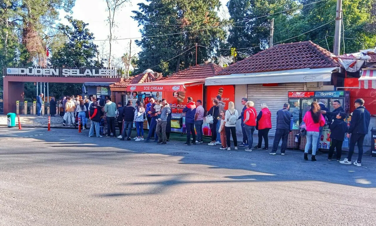 Öğleden sonra saat 15.30’da bile giriş kapısında ziyaret kuyruğu devam ederken tur otobüslerinin de biri gitti, diğeri geldi. Geçtiğimiz yıllarda şelalenin işletmesini devralan Antalya Büyükşehir Belediyesi, sadece 22 Ocak Pazar günü 2392 kişinin şelaleye giriş yaptığını açıkladı. Şelale çevresindeki işletmeler ise, düşen alım gücü etkisiyle eskisi gibi satış yapamamaktan yakınıyor.