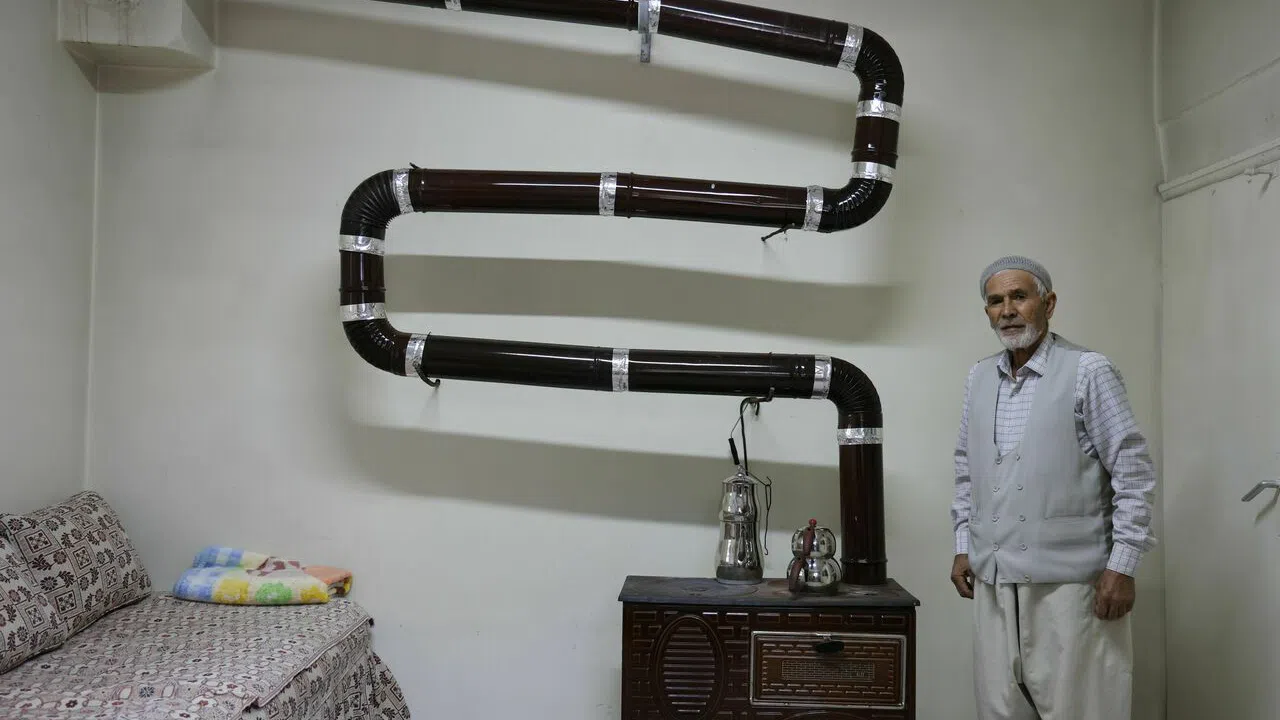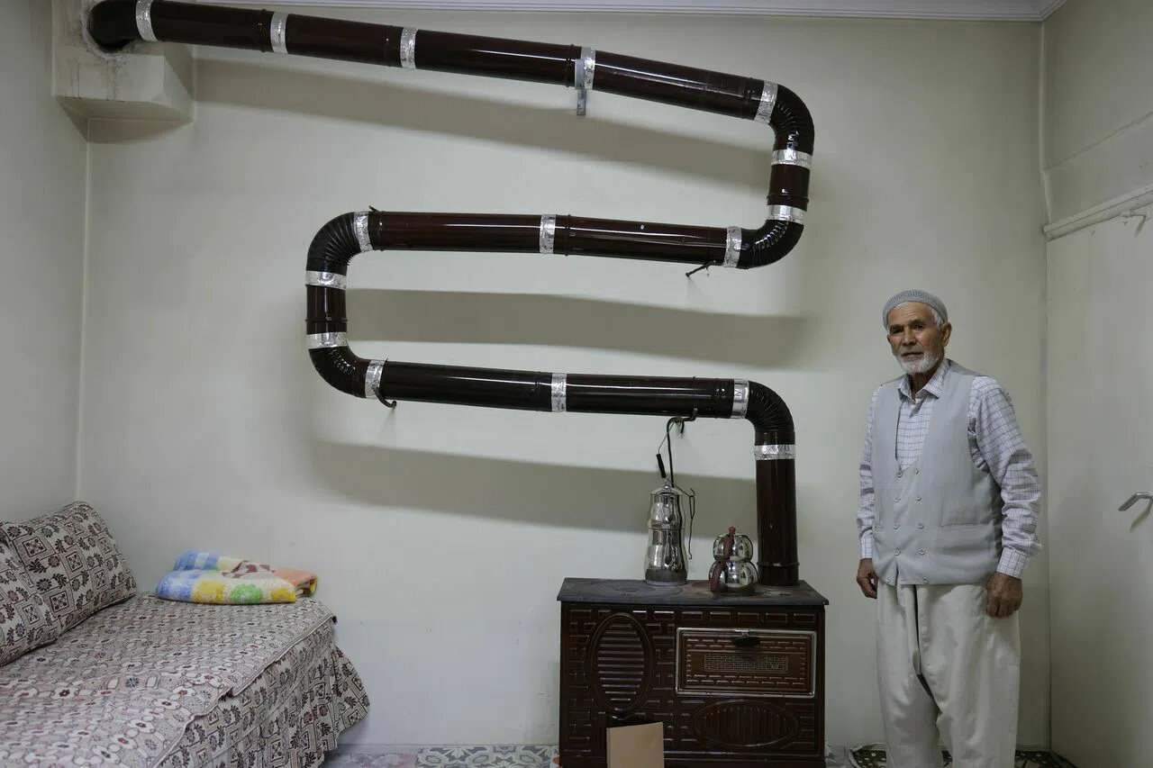 Kahramanmaraş'ın Onikişubat ilçesine bağlı Altınova Mahallesi'nde yaşayan 77 yaşındaki Hacı Ahmet İnce, kış aylarında eşi Zeliha İnce'nin üşümemesi için evlerine sıra dışı bir çözüm getirdi. İnce, duvarlara çizdiği kılavuzla 700 liraya aldığı soba ve borularını odanın içinde sanat eserine dönüştürdü.
