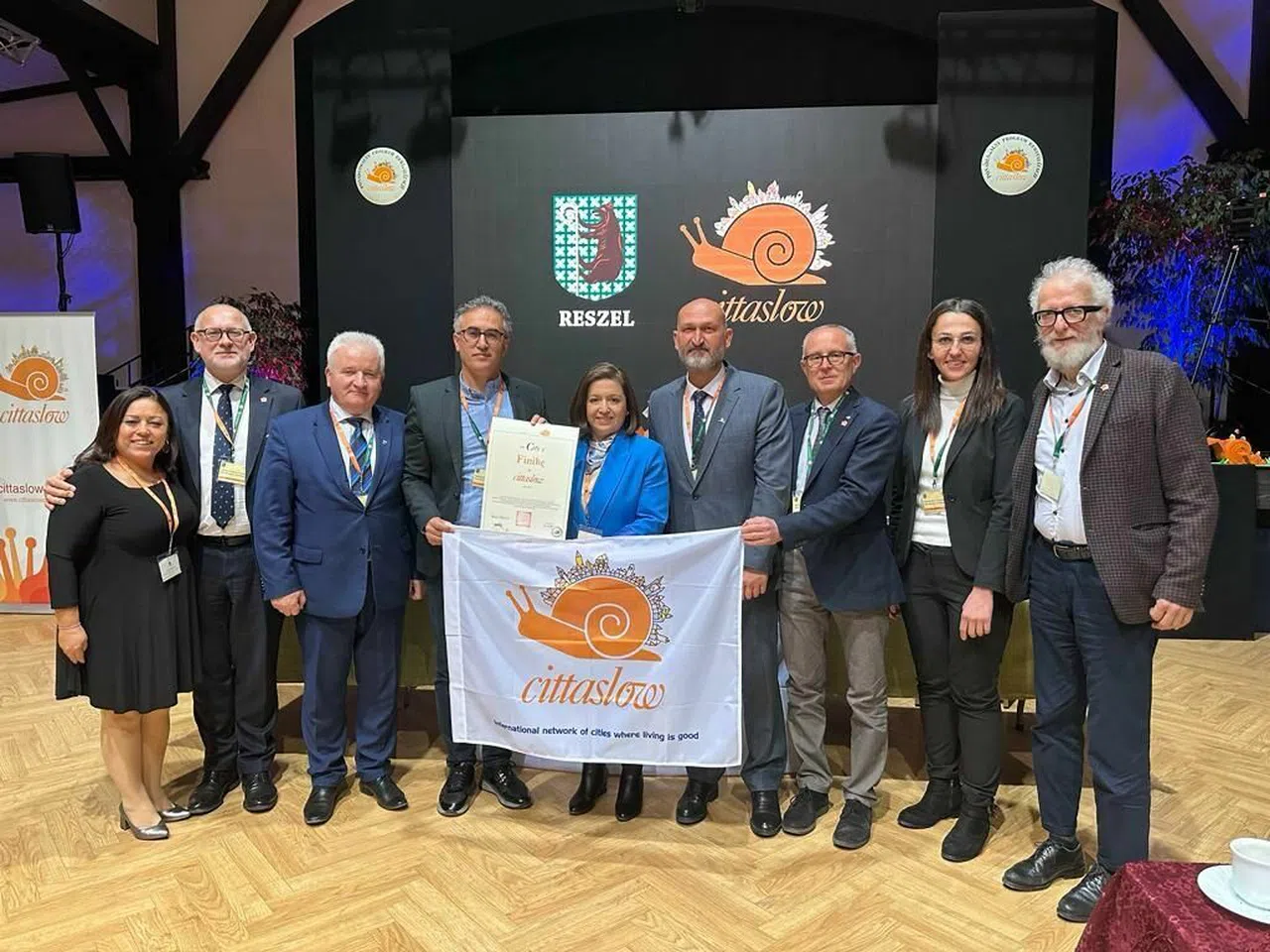 Polonya’nın Reszel şehrinde düzenlenen toplantıya Finike Belediye Başkan Yardımcısı Sıdıka Gökyar Kızılca, Meclis Üyesi Volkan Aydıner ve beraberindeki heyet ile birlikte Antalya Büyükşehir Belediyesi temsilcileri de katılarak Uluslararası Cittaslow Komite Başkanı Mauro Migliorini’den sertifika aldılar.