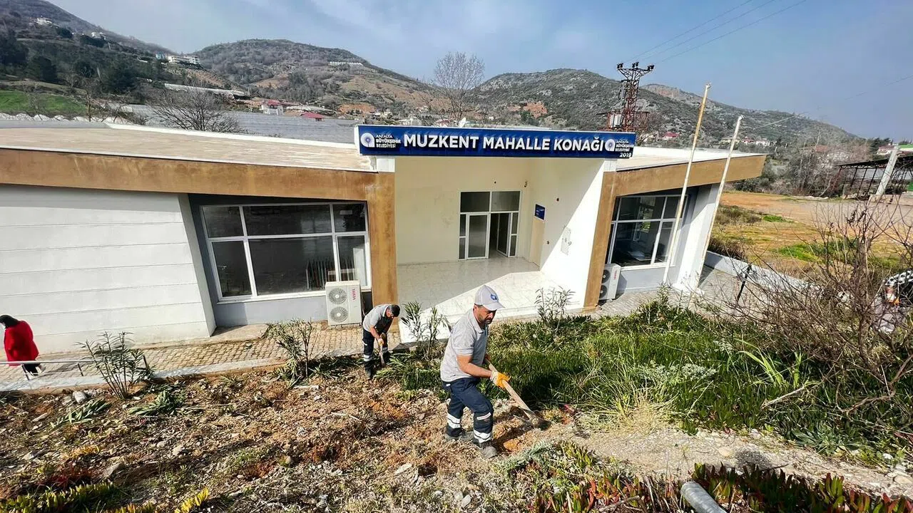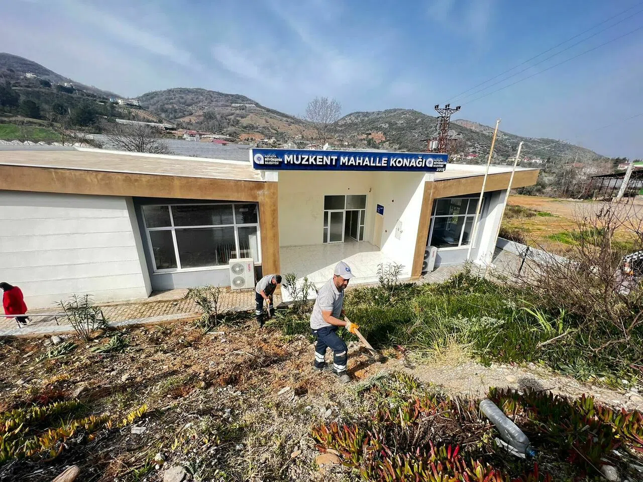 Bu çalışmalardan bir tanesi de Gazipaşa’da gerçekleştirildi. İlçeye bağlı Muzkent Mahalle Konağı’nın sulama suyu sistemi olmadığı için çevresinde büyüyen bitkilerin bakımı yapılamadığı gibi görsel kirliliğe de neden oluyordu. Gelen talep üzerine harekete geçen Büyükşehir ekipleri, öncelikle mahalle konağın çevresine yetecek bir sulama suyu bağlantısı gerçekleştirdi. Bununla birlikte 2000 metrekare bir araziye üzerinde konuşlu bulunan mahalle konağının çevresindeki bitkilerin bakımları yapılarak yeni bitkilerin dikimi gerçekleştirildi. Bitkilerin sulanması içinse sulama sistemi kuruldu.
