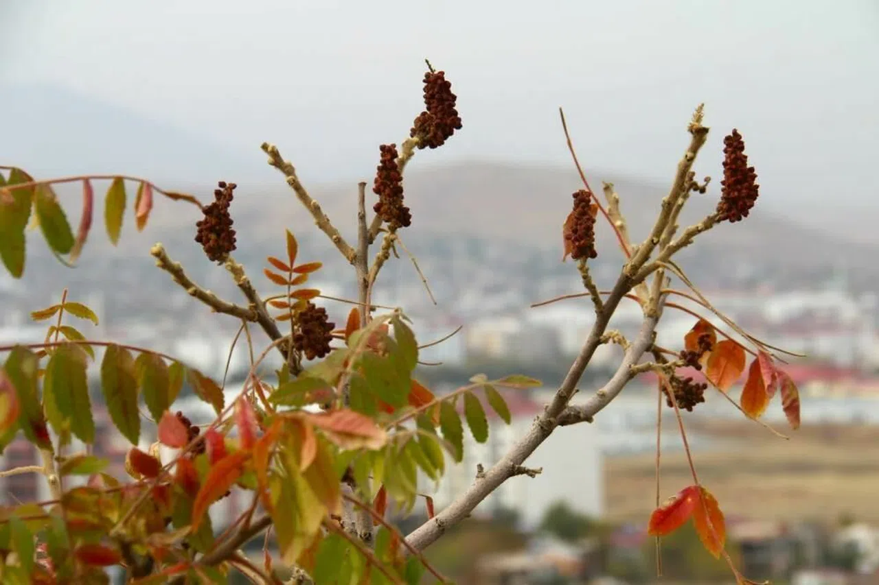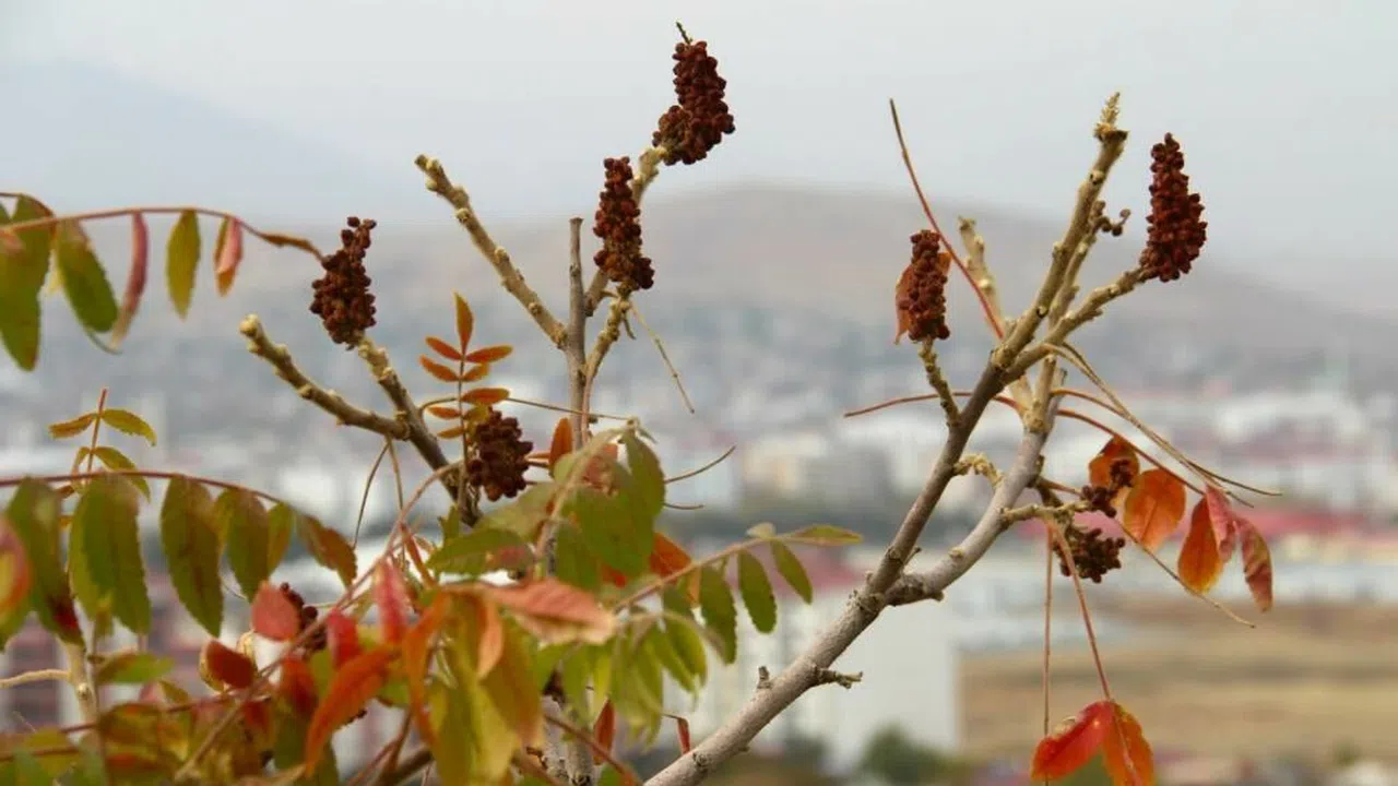 Kahramanmaraş'ın Afşin ilçesinde, doğal ortamlarda kendiliğinden yetişen sumak toplandı.