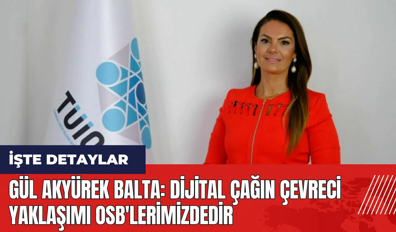 Gül Akyürek Balta, Türkiye’nin ilk yeşil doğan OSB’si olan TÜİOSB'nin bu alandaki deneyimlerini aktardı. Balta, 'TÜİOSB, Endüstri 4.0 felsefesine uygun, Avrupa Birliği Yeşil Mutabakatı kriterlerini karşılayan ve ikiz dönüşümü gerçekleştiren bir OSB olarak önemli bir avantaj sağlıyor' şeklinde konuştu. Ayrıca, yeşil ve dijital dönüşümün tüm OSB’lerde yaygınlaştırılması gerektiğini vurguladı.
