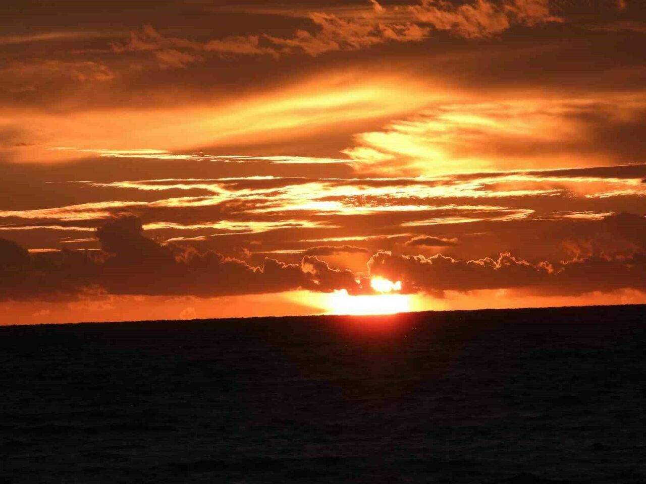 Samandağ’da şiddetli yağmurun ardından güneş, kırmızı bulutlar ve denizle harika bir uyum yakaladı.