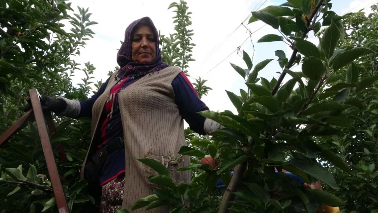 Elma bahçelerinde çalışan kadın işçiler de üretime katkı sağlıyor. 18 yaşındaki Gül Altınok, hasat döneminde çalışarak kendine maddi gelir sağladığını belirtti. “Ben 3 yıldır elma topluyorum. Sabah 05.00’te kalkıp, 08.00’de iş başı yapıyoruz. Akşam 17.30’da işlerimizi bitiriyoruz. Bu işi yapmayı seviyorum ve buradan tüm kadınlara öneriyorum” diyerek kadınları elma hasadına katılmaya davet etti. Öğrenci olduğunu ve bu iş sayesinde eğitimine maddi destek sağladığını söyleyen Altınok, elma toplamanın kendisi için keyifli bir iş olduğunu ifade etti.