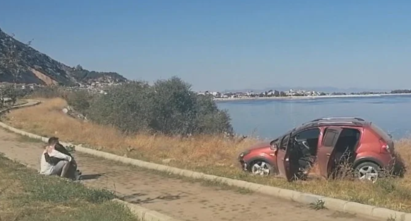 Kaza sonrasında genç çiftin birbirlerine sarılarak sakinleşmeye çalıştıkları görüldü.
