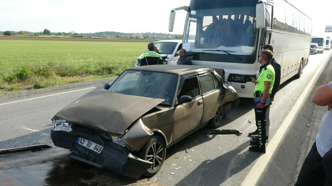 Kaza; Manavgat D-400 Karayolu yan yolda meydana geldi. Edinilen bilgiye göre, Özgür Alkın’ın kullandığı 07 C 74817 plakalı otel personellerini taşıyan servis otobüsü, trafik ışıklarında bekleyen Özcan Yıldız’ın kullandığı 43 RU 649 Plakalı Tofaş Doğan marka otomobile arkadan çarptı.
