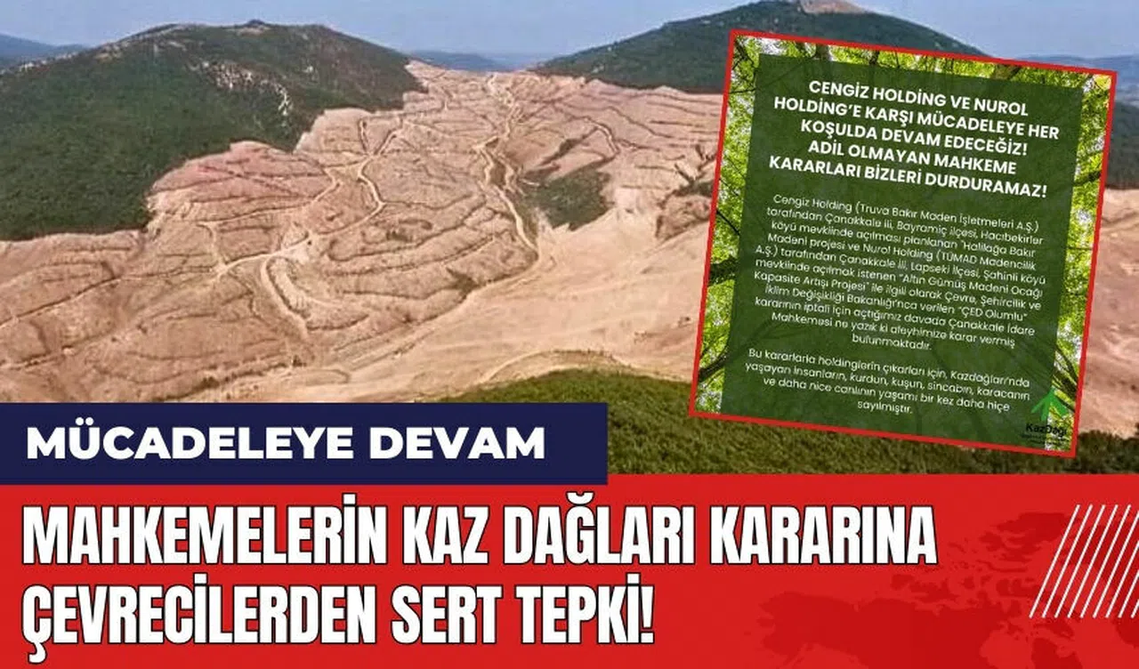 Kazdağı ve çevresinde açılması planlanan maden projelerine karşı açılan davalarda mahkemelerin aleyhte karar vermesi, çevre derneklerinin ve bireysel davacıların tepkisini çekti. Çevreciler temyiz ve Danıştay başvuruları ile mücadelelerine devam edeveklerini duyurdu