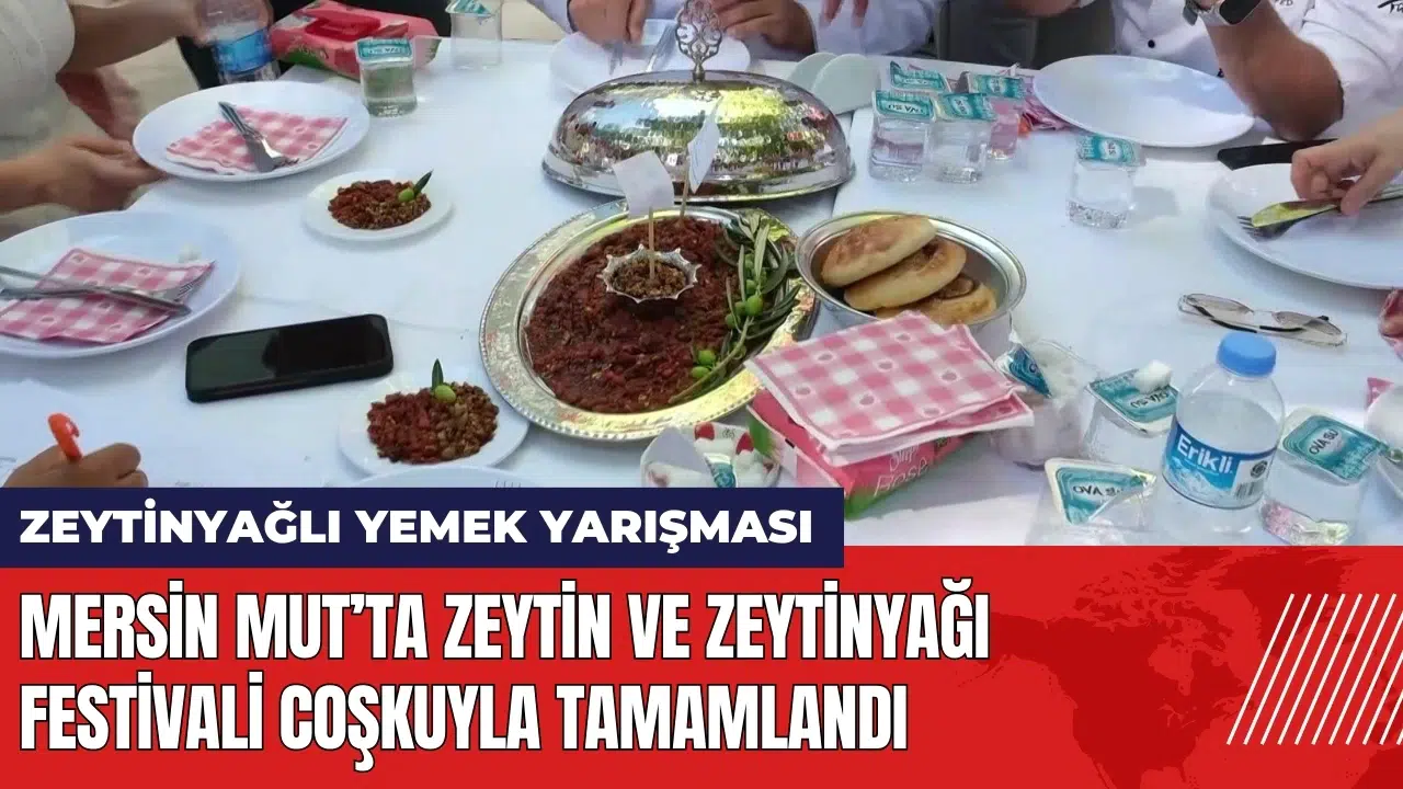 Zeytinyağlı Yemek Yarışması’na 40 yarışmacı katıldı ve yemekler lezzet açısından yüz puan üzerinden değerlendirildi. Yarışmada birinciliği su böreği ile Tülay Aslan kazandı. İkinciliği Esra Cansız, üçüncülüğü Arife Tunç ve dördüncülüğü ise Hacer Başbuğ elde etti. Ödüller, Mut Belediye Başkanı Murat Orhan tarafından takdim edildi.