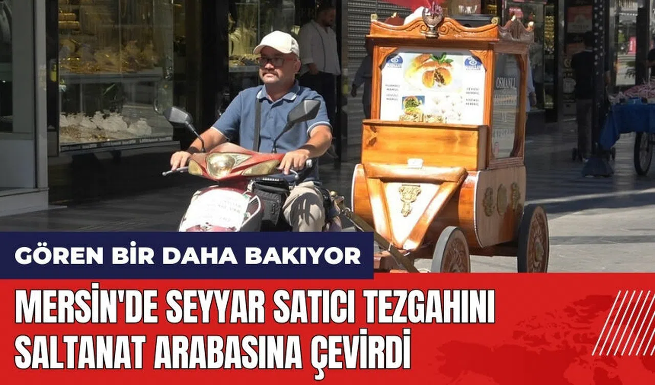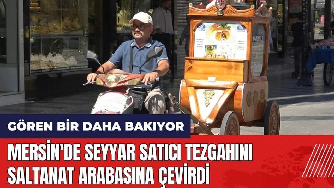 Mersin'de seyyar satıcılık yapan 43 yaşındaki Musa Tümer, gürgen ağacından yaptırdığı saltanat arabası benzeri tezgahıyla şehrin ilgi odağı oldu. Tümer, bu özel tasarım tezgahında kerebiç tatlısı ve mamul satarak hem geçimini sağlıyor hem de çocuklarını okutmayı hedefliyor.