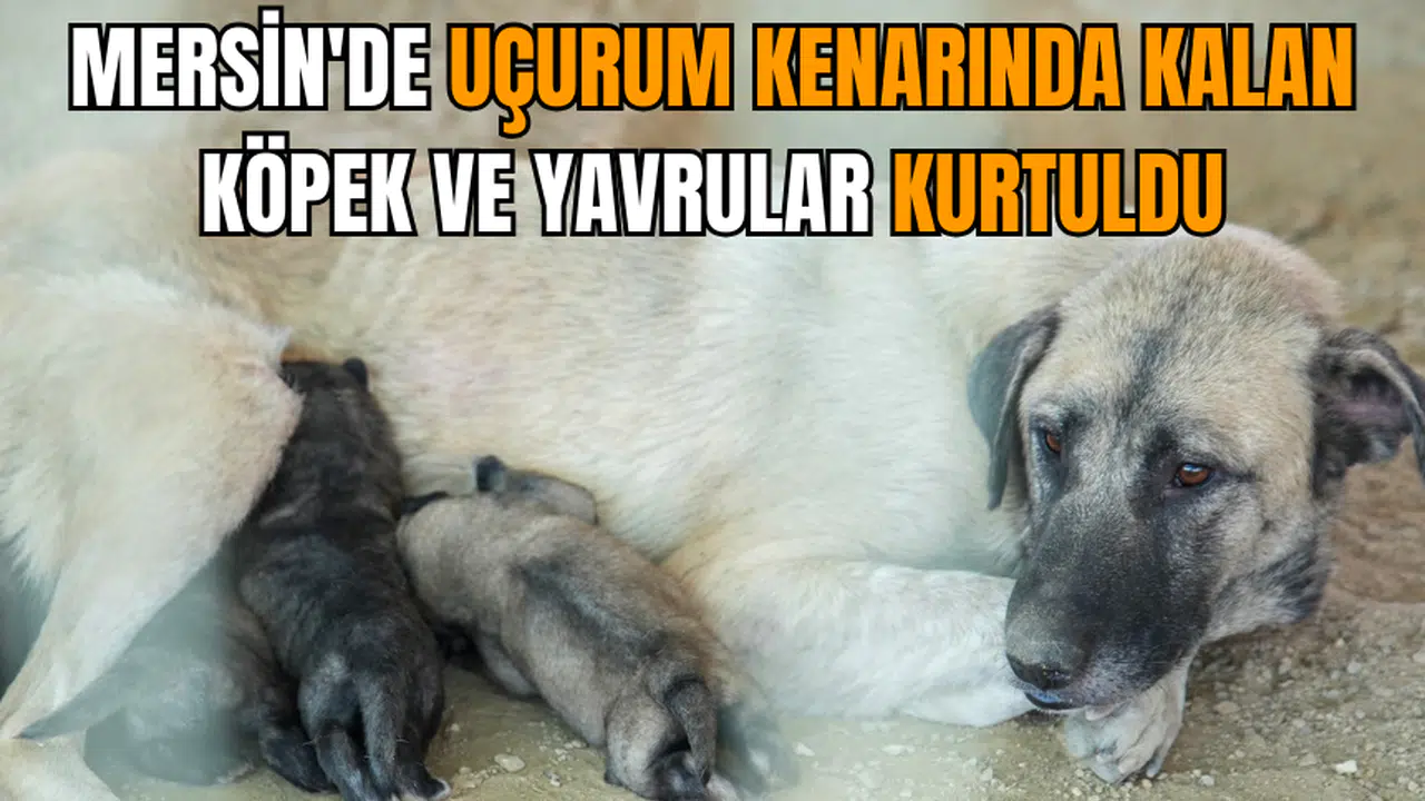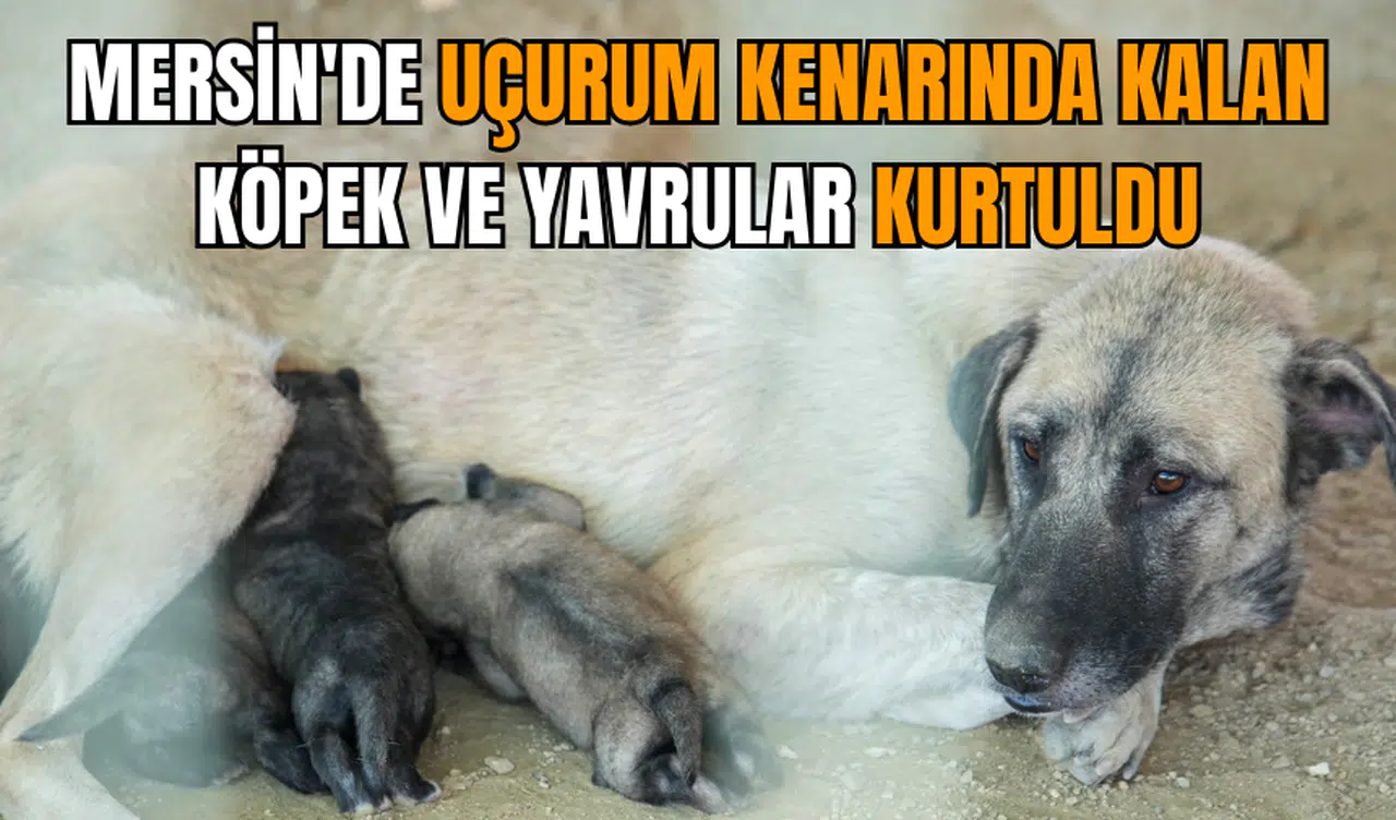 Mersin'in Tarsus ilçesinde 5 yavrusu ile birlikte uçurumun kenarında mahsur kalan köpek, belediye ekiplerince kurtarıldı.