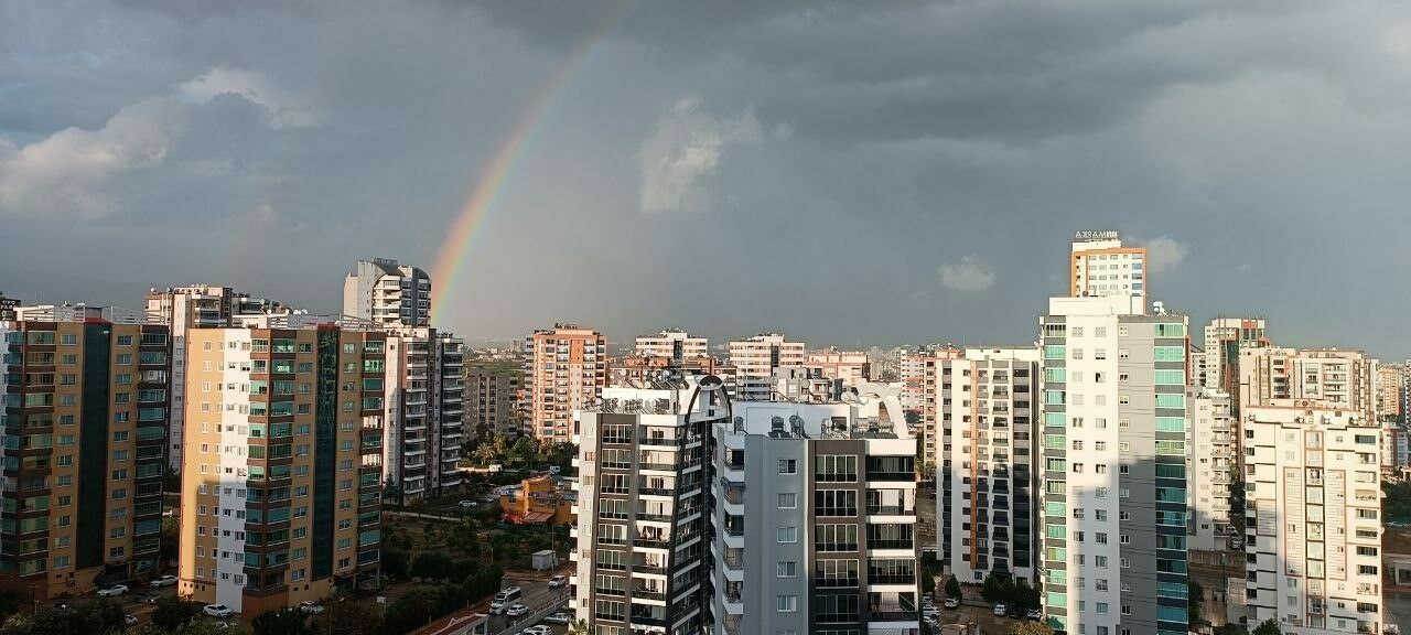 Mersin’de yağmurun ara verdiği anlarda gökyüzünde beliren gökkuşağı, görenleri büyüledi.
