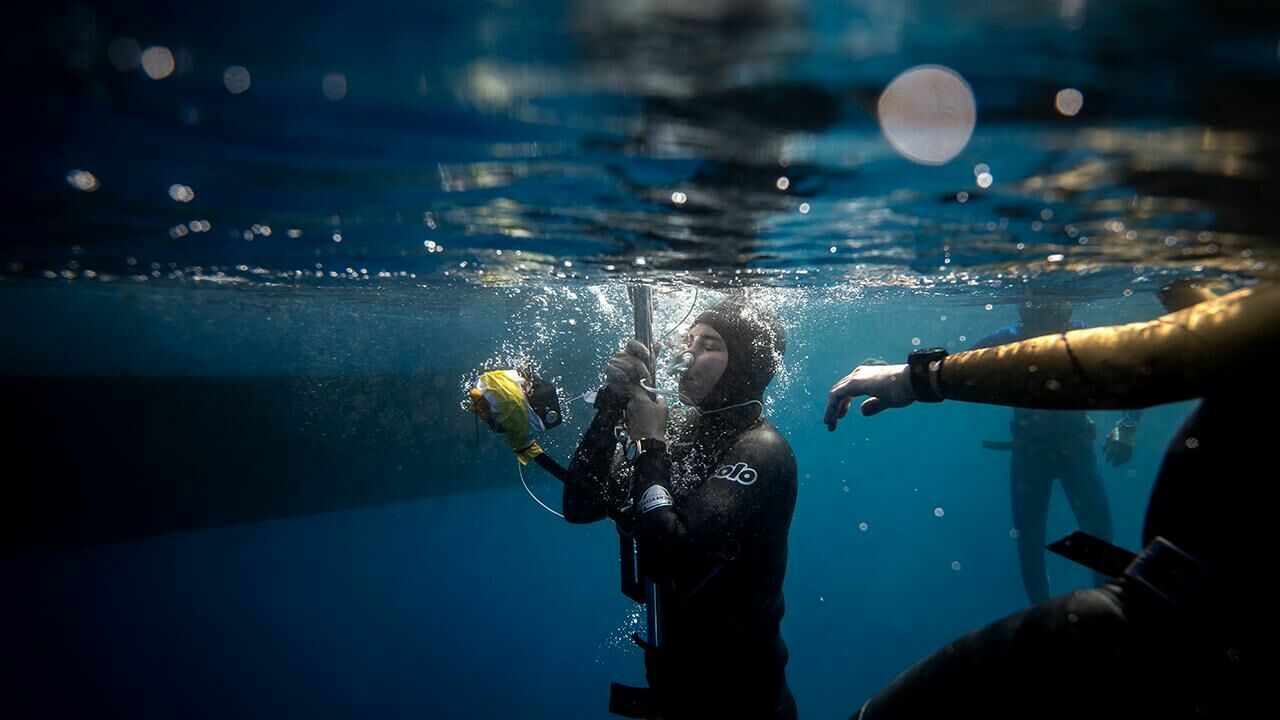 ‘Hatay’a nefes ol’ sloganıyla gerçekleştirilen rekor denemesinde Ercümen, su altında nefesini tutarak 106 metreye ulaştı ve yeni bir rekorun altına imza attı.