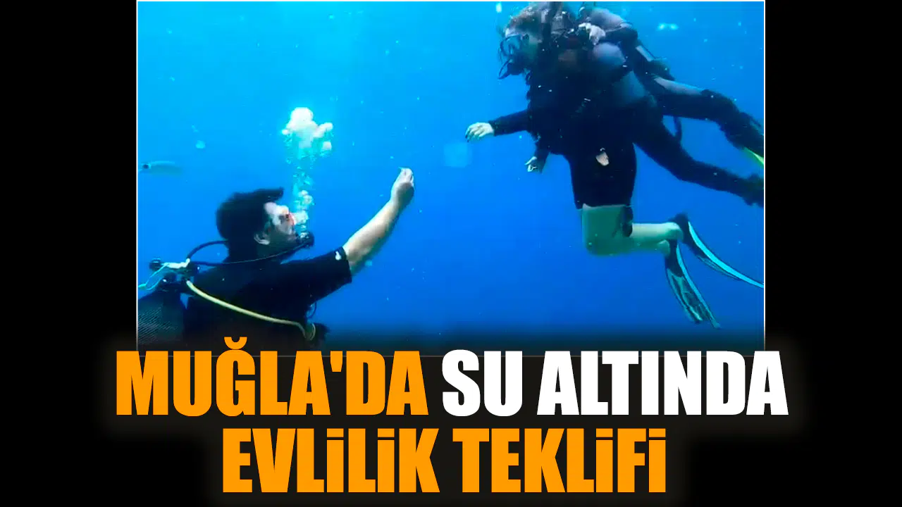 Karaada’da sualtına inen Aslan, kız arkadaşına tek taş yüzük sunarak evlenme teklifinde bulundu.