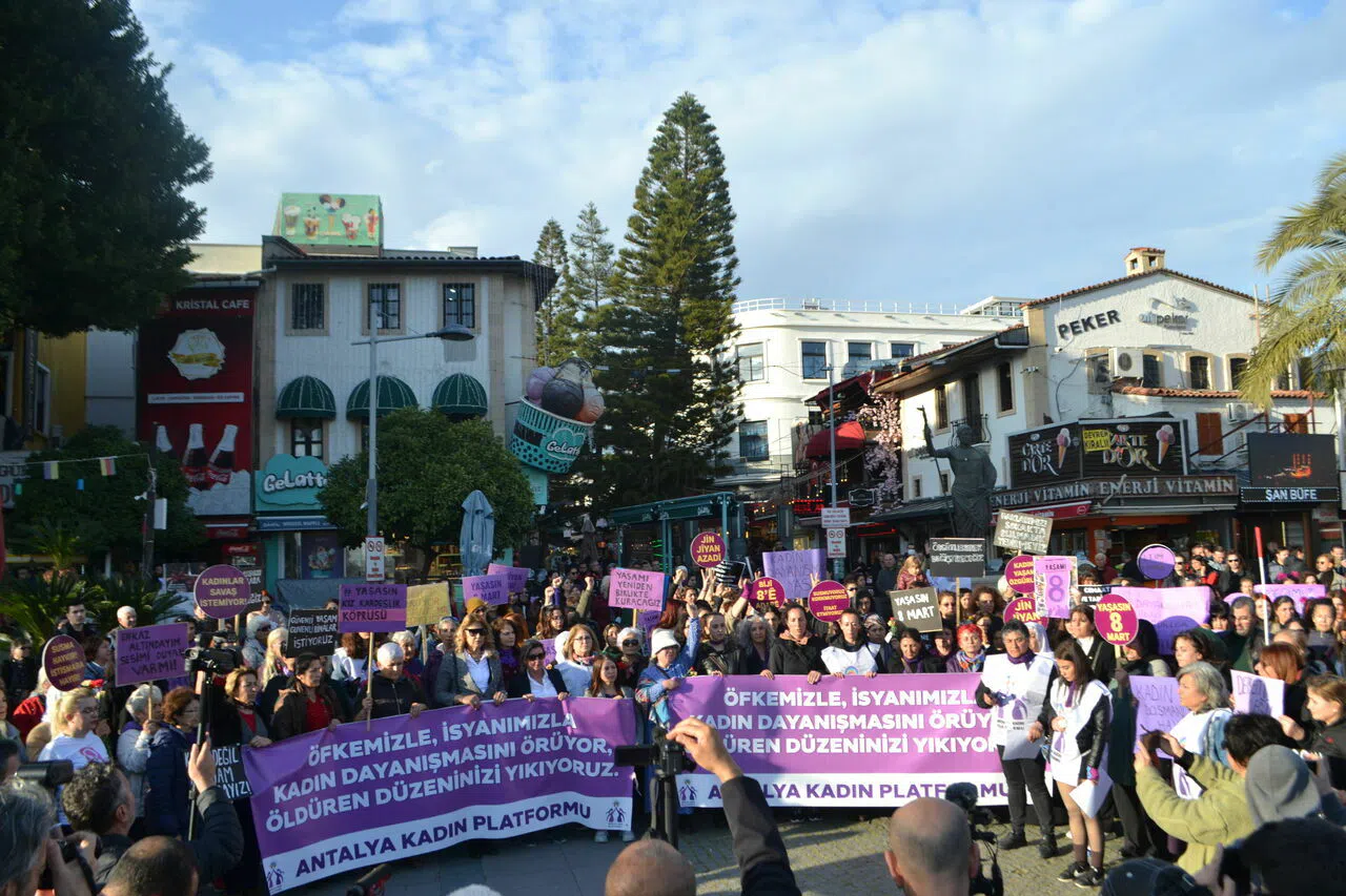 “Yüzyıllar olduğu gibi Feminist mücadele ülke sınırları ile yürütülen bir dayanışma değildir” diyerek mücadelenin uluslararası olduğunu vurgulayan Zeliha Şengöz, “İran’da ki kadınlar Mahsa Amini’nin ardından bayrağı devralıp tüm dünyayı harekete geçirmeyi başarması göstermiştir ki; Feminist mücadele evrenseldir. Tüm dünya hepimiz için eşit bir yer olana kadar bu yoldan vazgeçmeyecektir. İranlı kadınlar bir kez, daha Bu yüzyılın en önemli itici güçlerinden birinin Feminist mücadele olduğunu göstermiştir. Mücadelede hayatını kaybeden yol arkadaşlarımızı unutmayacağız. Unutturmayacağız. Siz gerçek rakamları saklasanız da biz hesabını sormaya devam edeceğiz! Erkekler 2022’de en az; 327 kadını ve 39 çocuğu öldürdü, 238 çocuğu istismar etti. Devlet için rakamdan ibaret olan bu veriler bizim mücadele sebebimizdir. Evrensel insan hakları ilkelerinden Anayasayı uzaklaştırarak, değişiklik önerenler, Anayasal eşitlik ve laiklik ilkesini yok sayanlar, kadınların ve çocukların nafakasına el uzatanlar, istismarı affedenler, kadın ve trans cinayetlerini görmezden gelenler, LGBTİQ+ bireyleri hedef gösterenler yasalar önünde hesap verene kadar da mücadelemizden vazgeçmeyeceğiz! Geçen sene de buradaydık gelecek sene de burada olacağız!” diye konuştu.