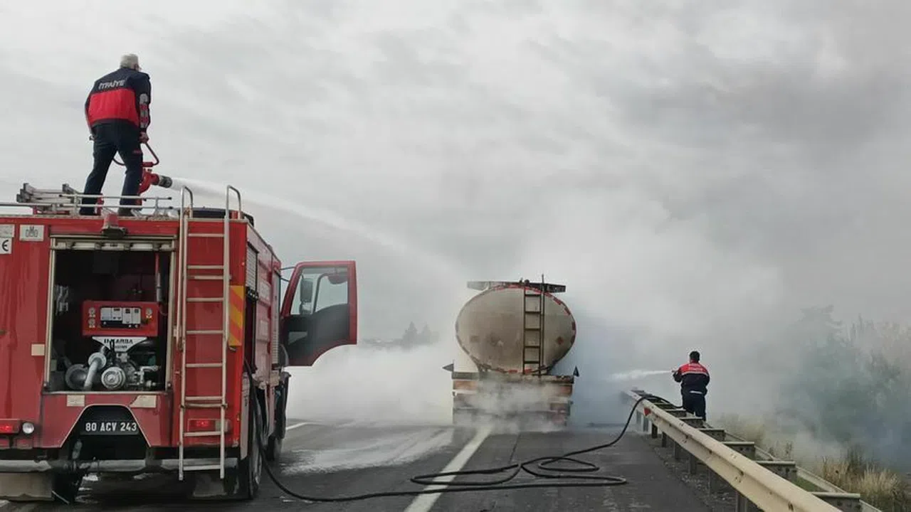 Osmaniye istikametine doğru seyir halindeki tankerden alevler yükselmeye başladı. Alevleri fark eden tanker sürücüsü, yolun kenarına çektiği tankeri dorseden ayırdı ve durumu itfaiyeye bildirdi.