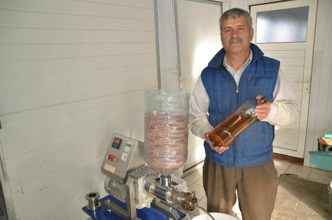 Üretici Abdullah Güven, "Kurutmuş olduğum nar çekirdeğinin 8 kilosundan 1 kilogram nar çekirdeği yağı elde ediyorum. 20 gram nar çekirdeği yağını 40 TL’den satıyorum. Türkiye'nin her yerinden sipariş alıyorum" dedi.