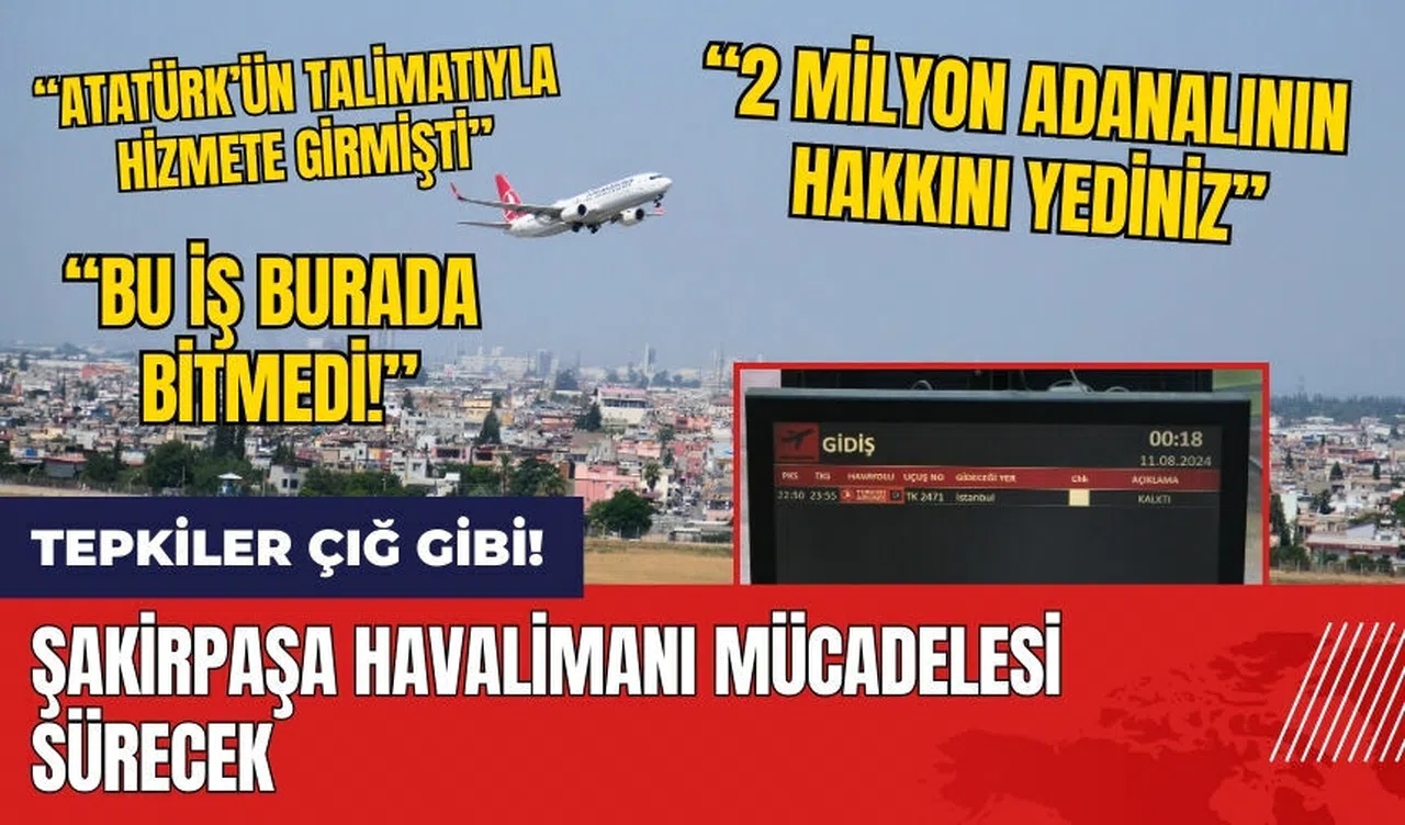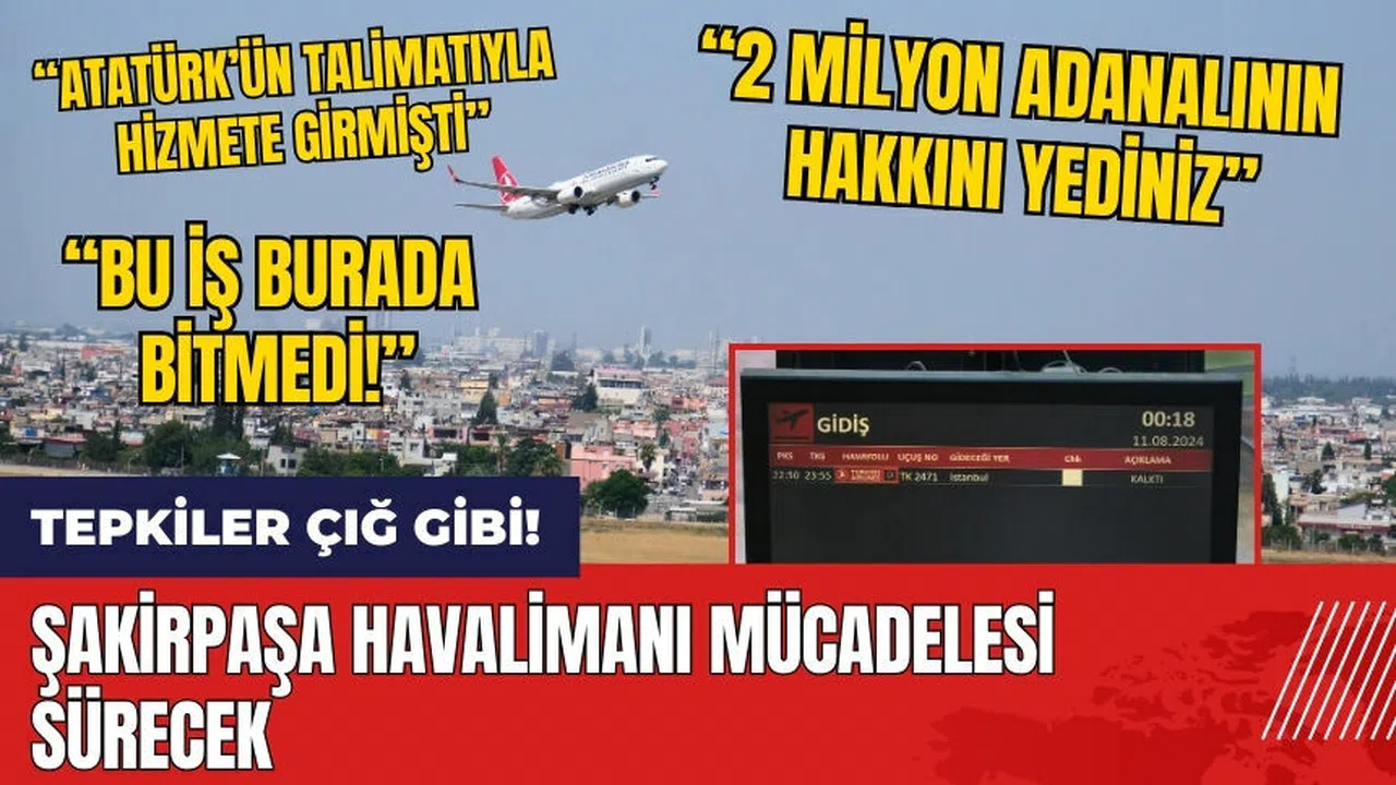 Adana Şakirpaşa Havalimanı’nın kapanması üzerine tepkiler yükseldi. CHP Adana Milletvekili Müzeyyen Şevkin, 'Bu iş burada bitmedi' diyerek havalimanının yeniden açılması için mücadele edeceğini belirtti.