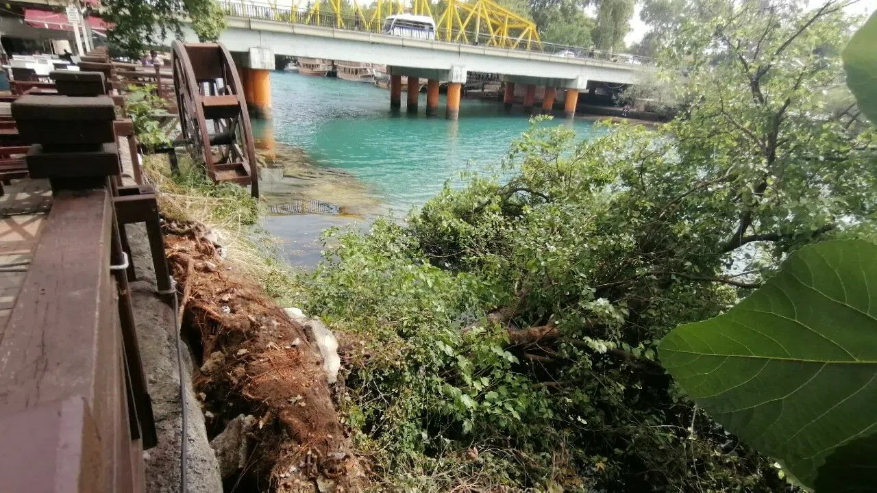 Yukarı Pazarcı Mahallesi Kordon Caddesi'nde Belediyeye ait çay bahçesi içerisinde ırmak kenarında bulunan yaşlı karacaağaç, şiddetli rüzgara direnemeyerek Manavgat Irmağı'nın serin sularına devrildi. Yemyeşil görüntüsüyle insanlara huzur veren, sıcak havalarda insanların gölgesine sığındığı karacaağaçın üzerinde kökünün bulunduğu çay bahçesinin istinat duvarıyla birlikte ayrılarak ırmağa devrildiği gözlendi. Olay anında kimsenin yaralanmadığı bildirildi.