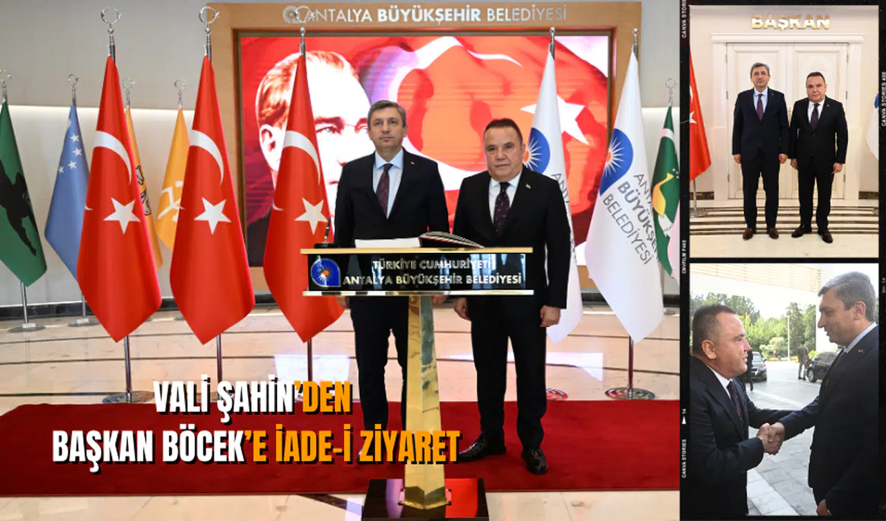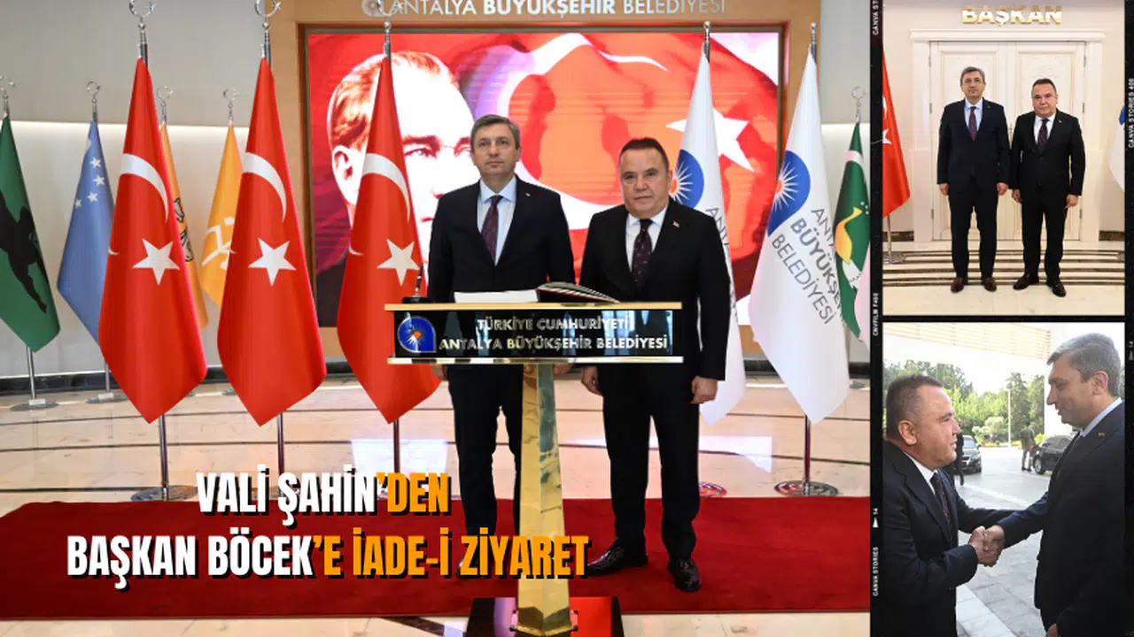 Antalya Büyükşehir Belediyesi’nden alınan bilgiye göre, Hükümet Konağı’nda düzenlenen törenle karşılanan ve görevine başlayan Antalya Valisi Hulusi Şahin kendisine hoş geldin ziyaretinde bulunan Antalya Büyükşehir Belediye Başkanı Muhittin Böcek’e iade-i ziyarette bulundu. Başkan Muhittin Böcek ve bürokratları tarafından karşılanan Vali Şahin Büyükşehir Belediyesi anı defterini imzaladı.
